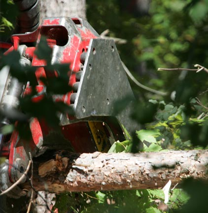 Through a competitive bidding process, Rich Oja of Bear Lake Forest Products was selected to harvest the Red Pine. The following photos show Rich's processor in action.
