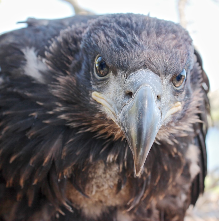 Both Gratiot eaglets are male. The larger male probably hatched a bit earlier. He weighed 7.50 lbs. His smaller brother weighed in at 6.393. Average weight for a full grown eagle is about 12 lbs. |