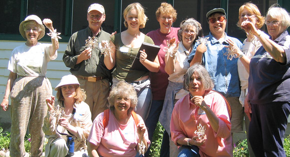 Participants hiked recently logged and recovering forests with forester Byron Sailor and basket maker Nancy Stoneman to understand ideas on sustainable forest practices. They then used split ash wood to make a woven wood ornament.