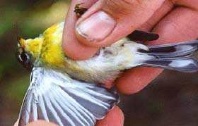 In his slide show, Jake noted both the great variety of warblers nesting near the lake and the many species which migrate through the area. He and Mike captured, recorded data from, banded, and released over 100 warblers at the lake during the 3 years.