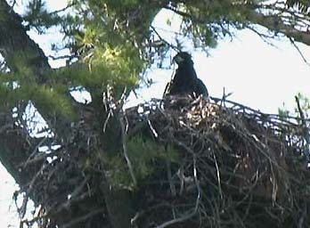 The pair of nesting eagles at Gratiot Lake produced a squawking baby boy in the spring of 2001. This was the third eaglet to hatch from this pair in the last four years.