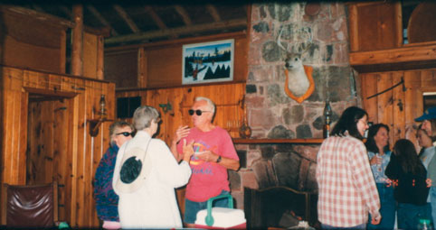 Blue skies and a placid lake graced the day of the first GLC Open House at the Noblet Field Station on August 8, 1999. People came by land and by water. Even the noisy logging operation which blocked the access road to the cabin did little to mar the success of the day.