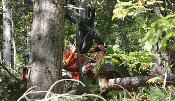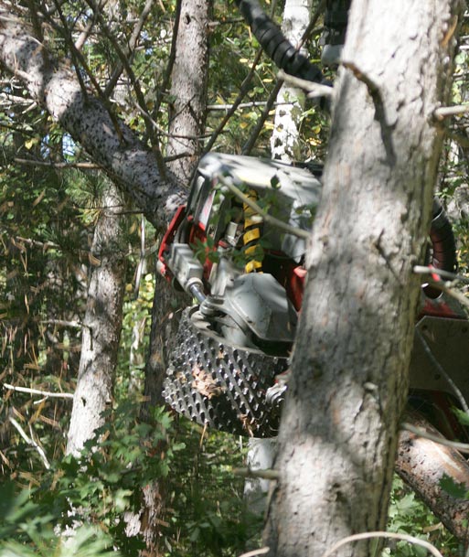 Through a competitive bidding process, Rich Oja of Bear Lake Forest Products was selected to harvest the Red Pine. The following photos show Rich's processor in action.