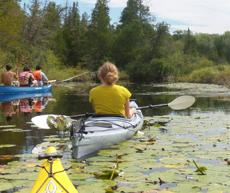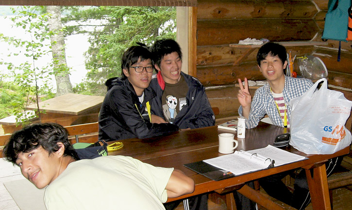 For all of the students it was their first experience "camping" in the north woods. They seemed to love every minute of it. Language differences were not a barrier to their appreciation of nature. The South Korean students, who live in urban settings, remarked that they had never seen so many stars. Participants learned canoe skills quickly and investigated the outlet to the Little Gratiot River where they discovered a series of beaver dams that are causing very high water levels in Gratiot Lake.