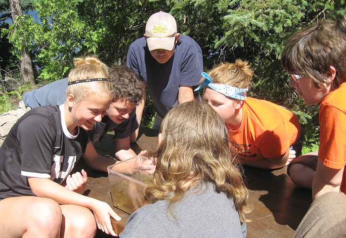 Seven students spent five days at the Noblet Field Station and Gratiot Lake Preserve during Michigan Tech's Summer Youth Program Exploration: Aquatic Ecology at Gratiot Lake. Under the guidance of science teacher Brian Rajdl and counselor Kara Oikarenen, the high school students studied the chemistry and biological communities of the lake, the Little Gratiot River, Sucker Creek, and a beaver dam near the Bear Paw Path. Students collected and analyzed aquatic invertebrates. They learned how ecologists work. This rustic camping experience also offered opportunities for the group to learn to work together cooperatively.