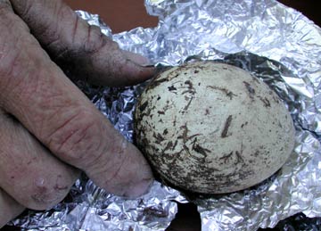 While the helpers held the eaglet, Joe Papp returned to the nest to search for unhatched eggs. He found one which was sent to the lab for analysis.