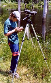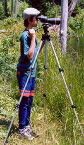 In July, Brett Harrison used a spotting scope and binoculars to locate cavities among the snags that stand tall in the Beaver Pond in order to study the birds that nest in these cavities. He also documented the flight patterns of the birds. As the young cavity nesters fledged, the pond became a feeding area for Broad-winged Hawks and Merlins. The Beaver dam is an excellent spot to observe this interaction.