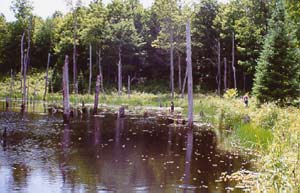 The Woodland Beaver Pond produces huge amounts of food, including dragonflies, for cavity nesting birds.